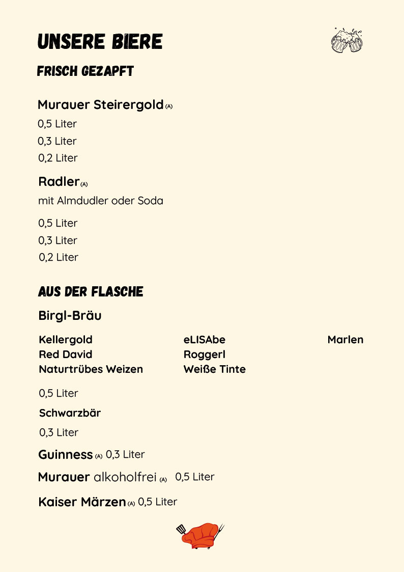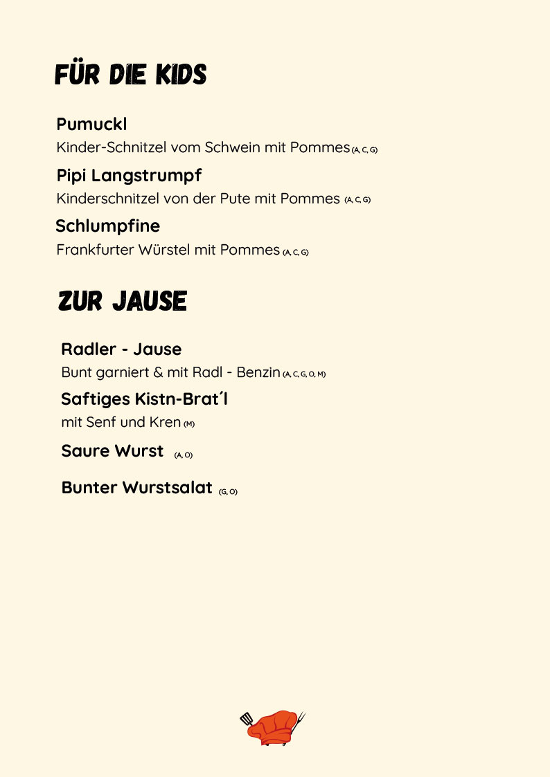 Ob traditionelles Wiener Schnitzel, gegrilltes Kotelett oder Kärntner Mirnock-Lachs - auf unserer Speisekarte ist für jeden etwas dabei. Am Wochenende, an Feiertagen oder auf Vorbestellung servieren wir Ihnen auch unsere beliebte Krumpenplatte ab 2 Personen. Für den kleinen Hunger oder zur Jause halten wir sowohl warme als auch kalte Speisen bereit.