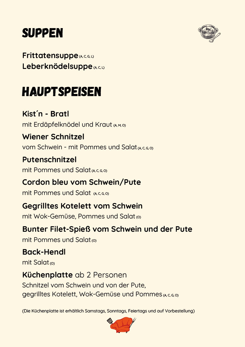Unsere Speisekarte - Cafe & Gasthaus Frischauf in Bischofstetten, Bezirk Melk